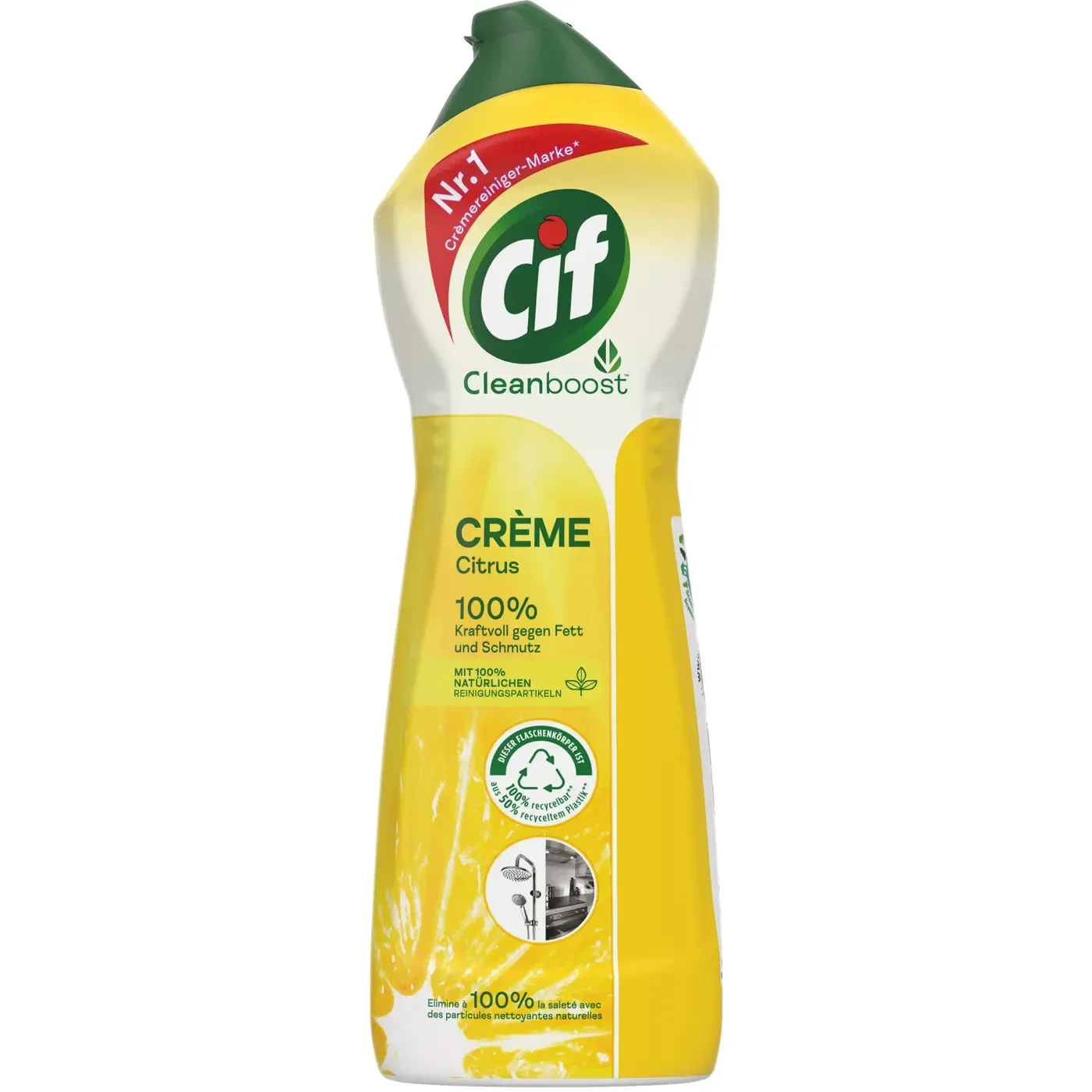 Die Cif Crème Citrus bietet eine unglaubliche Reinigungskraft für jeden Zweck. Millionen von natürlichen Reinigungspartikeln in jedem Tropfen reinigen Küchen, Bäder und mehr. Das vielseitige Produkt entfernt Schmutz zu 100% und sorgt für Glanz und makellose Sauberkeit – jeden Tag. Sie pflegt die Oberflächen und entfernt auch den hartnäckigsten Schmutz zu 100% – mit Hilfe der Reinigungspartikel aus Marmor, die Verunreinigungen einfach abheben.